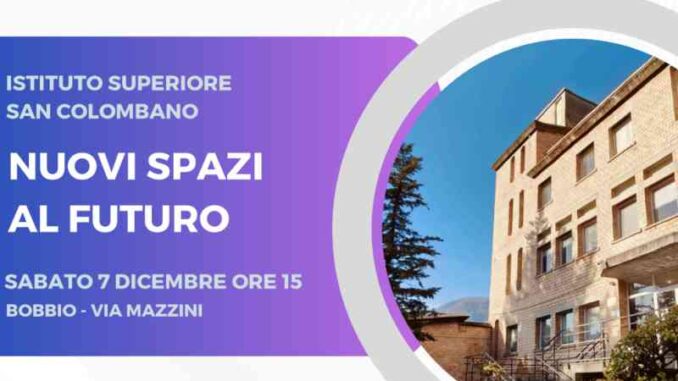 La presentazione dei nuovi spazi – realizzati e in progetto – per l’istituto “San Colombano” si terrà sabato 7 dicembre dalle ore 15 presso la sede della scuola in via Mazzini a Bobbio.