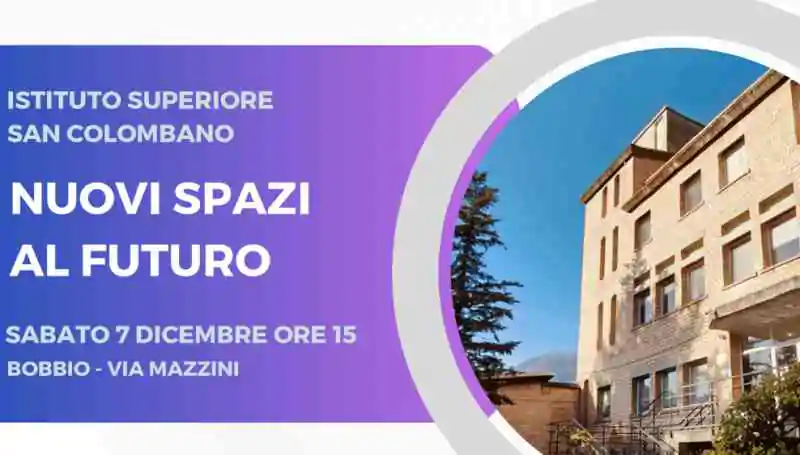 La presentazione dei nuovi spazi – realizzati e in progetto – per l’istituto “San Colombano” si terrà sabato 7 dicembre dalle ore 15 presso la sede della scuola in via Mazzini a Bobbio.