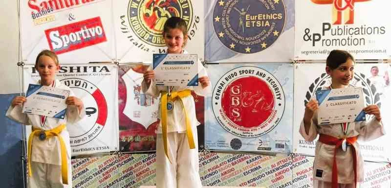 La vittoria è arrivata con Ludovica Franchi nella categoria Ragazzi (8-9 anni) fino alla cintura arancione; questo livello ha regalato anche gli argenti di Maddalena Murru (Bambini, fino ai 7 anni) e Dafne Zilocchi (Ragazzi, 8-9 anni)) e il bronzo di Filip Lazovski (Bambini, fino ai 7 anni). Nelle cinture verdi-blu, infine, altre tre medaglie: secondo posto per Melissa Sofia Puscas nei Ragazzi, stesso risultato nei Veterani (40-50 anni) per Roberto Spanò e infine bronzo per Valentina Morenghi nei Ragazzi.