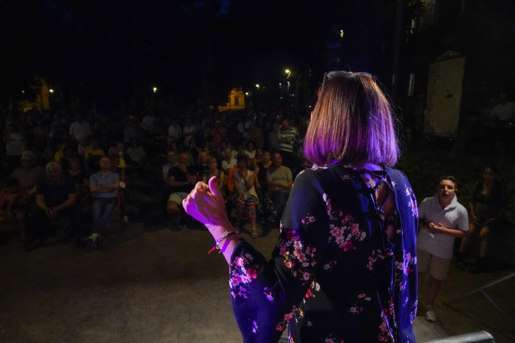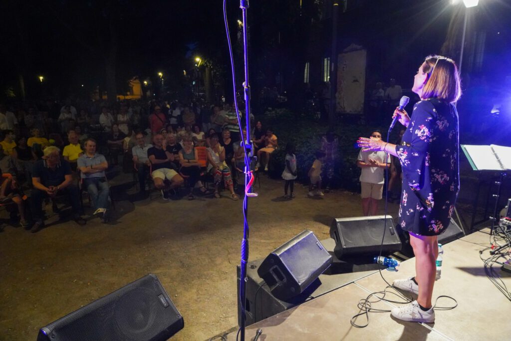 Una festa per ringraziare, dunque. Katia Tarasconi, nuova sindaca di Piacenza, ha voluto chiudere in compagnia, circondata dalle persone che l’hanno sostenuta, la lunga campagna elettorale che domenica notte l’ha portata a vincere il ballottaggio con Patrizia Barbieri. Erano in tanti quelli che ieri sera, lunedì 27 giugno, si sono riuniti nel giardino Merluzzo di fronte alla Luppoleria per mangiare, bere e ascoltare la musica live dei Cani della Biscia. C’erano i tantissimi volontari che si sono impegnati nella campagna, c’erano i candidati di tutte le liste, c’erano simpatizzanti, amici, famigliari, bambini.