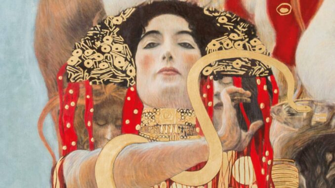 Qual è la storia del dipinto “Medicina”? Nel 1894, a Klimt fu commissionata la realizzazione di una serie di allegorie per il soffitto dell’Aula Magna dell’Università di Vienna. Le tele dovevano rappresentare le facoltà dell’Ateneo, glorificando le scienze razionali e i loro effetti positivi in ambito sociale. Klimt realizzò dunque “Giurisprudenza”, “Filosofia” e “Medicina”, rifiutandosi però apertamente di fornire una visione razionale del mondo. “Medicina”, infatti, non celebrava i traguardi rivoluzionari nell’ambito medico, bensì mostrava un’umanità sull’orlo del baratro, vittima di una crisi sociale, politica e psicologica. L’opera rappresentava un flusso di corpi nudi, crudi e reali, logorati dalle malattie e impotenti contro l’inesorabile forza del tempo. Rappresentava il succedersi degli eventi dell’esistenza umana, dalla creazione alla dissoluzione della vita stessa.