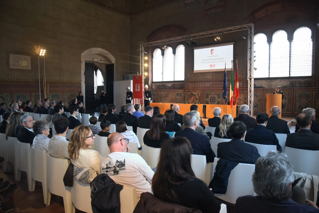 Due persone diverse ma accomunate da un aspetto: entrambi amavano profondamente Piacenza ed entrambi si sono spesi per farla splendere. E’ questo il motivo per cui questa mattina, a Palazzo Gotico, la benemerenza “Piacenza Primogenita d’Italia” è stata consegnata alla memoria di Corrado Sforza Fogliani e Giancarlo Bianchini. Sforza Fogliani, storico presidente della Banca di Piacenza e promotore di importanti iniziative culturali, esponente di spicco della Finanza nazionale, è deceduto il 10 dicembre scorso 2022.