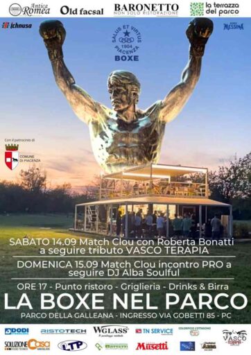 La Boxe nel Parco firmata Salus et Virtus il 14 e 15 settembre: match clou con la campionessa piacentina Roberta Bonatti. Lo spettacolare incontro è previsto sabato alle ore 18.