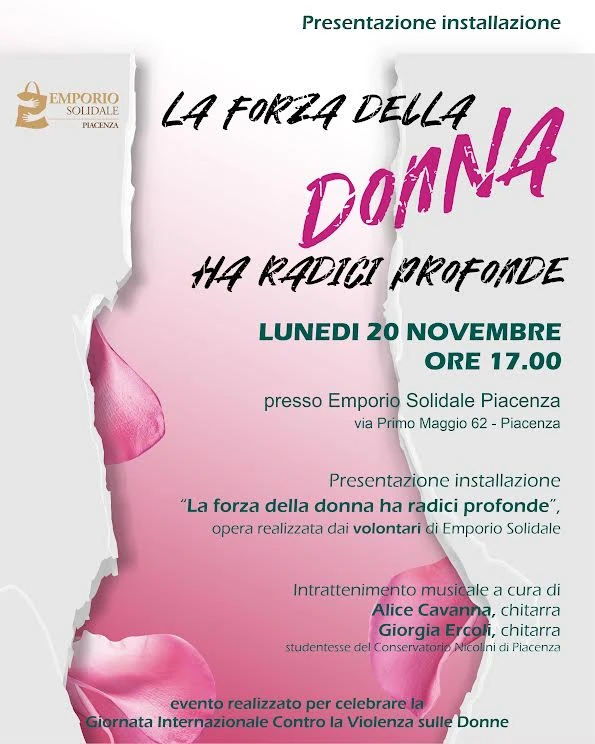Anche quest’anno, in occasione della Giornata Internazionale Contro la Violenza sulle Donne, Emporio Solidale Piacenza propone alla cittadinanza un momento di sensibilizzazione, con la presentazione dell’installazione “La forza delle donne ha radici profonde”, lunedì 20 novembre alle ore 17.