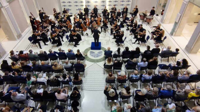 Le note di Beethoven hanno allietato la serata al numeroso pubblico intervenuto al PalabancaEventi di via Mazzini per assistere all’applauditissimo concerto (rientrante nel programma di Celebrazioni dei 500 anni della Basilica di Santa Maria di Campagna) della Harvestehuder Sinfonieorchester di Amburgo. Nel Salone dei depositanti, i 45 musicisti diretti da Christian Kunert – preceduti dal saluto del condirettore della Banca di Piacenza Pietro Coppelli – hanno eseguito l’Ouverture Fidelio in mi maggiore, op. 72 e la Sinfonia n. 7 in la maggiore, op. 92. “Fidelio o l’amore coniugale” fu l’unica opera teatrale che il compositore tedesco (1770-1827) scrisse. Nell’edizione definitiva proposta ieri sera, il Fidelio venne rappresentato il 23 maggio 1814 al Teatro di Porta Carinzia diretto da Beethoven stesso. Lo spirito di riscossa e di vigorosa speranza che anima l’opera, è già nell’Ouverture, che inizia con 22 batture che sono quasi una sigla dell’idea di forza morale che nasce dal dolore.