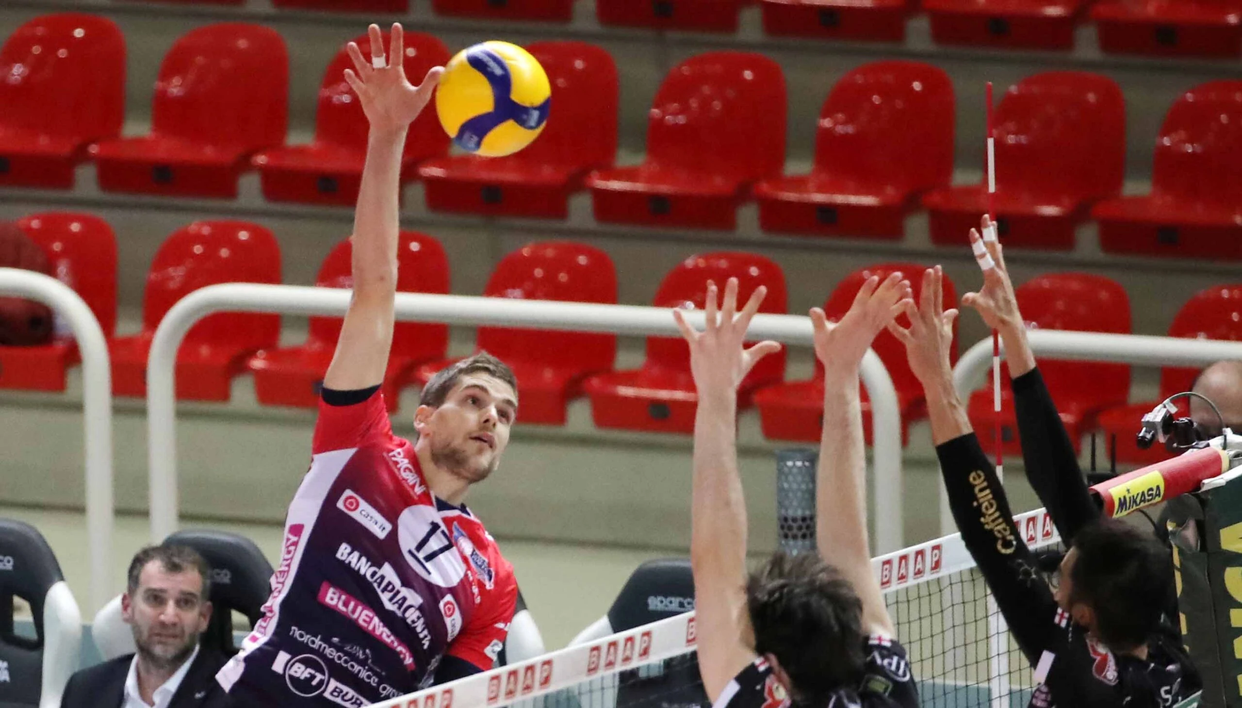 Sotto 2-0 Clevenot e compagni trovano la reazione che li fa svoltare, riuscendo a ribaltare il risultato: dopo aver subito i primi due parziali senza riuscire a imporre il proprio ritmo, Piacenza riesce dal terzo set in avanti a giocare più sciolta e guadagnare fiducia punto dopo punto. Trascinata dalle giocate di capitan Clevenot, (Mvp a fine match, 21 punti a referto di cui 4 muri e 3 ace), dal solito Russell (18 punti) e da un Mousavi cresciuto dal terzo set in avanti i biancorossi con questa vittoria salgono a quota 29 punti e agguantano il quinto posto in classifica staccando Modena.