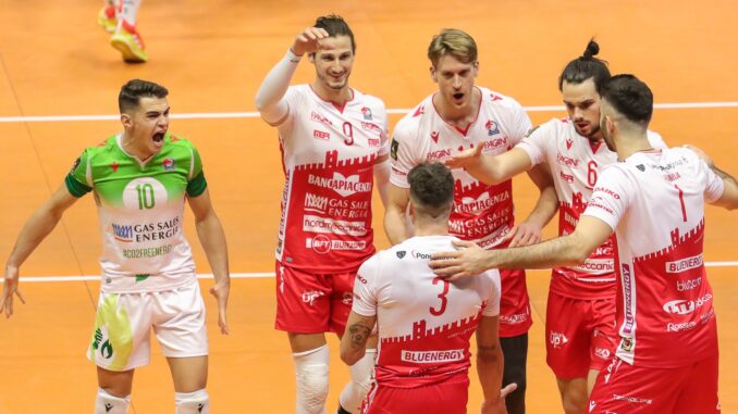 Alla quinta giornata arriva la prima sconfitta per la Gas Sales Piacenza, che si arrende a Monza venendo battuta 3-0 (25-22, 25-21, 25-17) dai brianzoli nello scontro diretto fra due delle capolista di Superlega. Per due set c’è partita, con Piacenza che in più di un’occasione si porta anche a condurre salvo poi cedere nel finale al break dei padroni di casa che chiudono dopo un’ora e mezza di gioco.