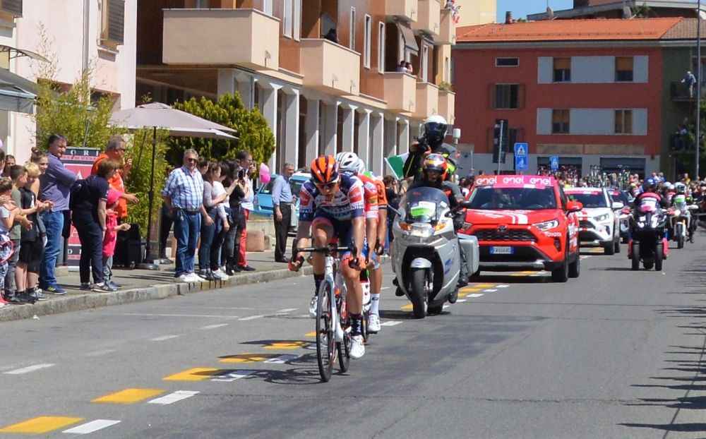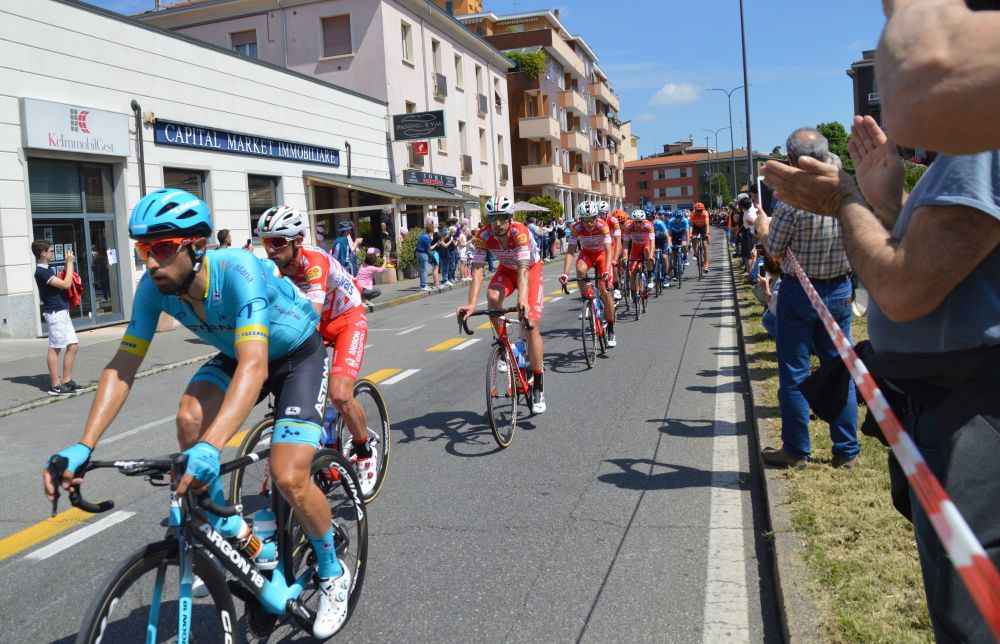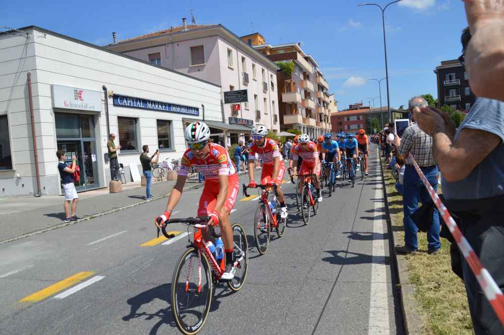 La grande festa del Giro d’Italia coinvolge Piacenza. “Sono in ritardo, si vede che stanno pedalando piano”. “Cavoli ci sono più macchine della polizia che biciclette”. “Sono a Cadeo, cinque minuti e sono qui”. Il passaggio del Giro d’Italia è soprattutto questo. Perchè tra i ciclisti in fuga e il gruppo, lo spettacolo vero e proprio dura poco più che dieci secondi. L’evento è un altro. Il corteo che precede gli atleti, l’elicottero della Rai, i bambini assiepati lungo le strade. Il signore anziano che tranquillamente pedala in sella alla sua bici da corsa indossando un maglietta tricolore che viene rimproverato dalla polizia. Questo è il passaggio dello storico giro. E poi le grida della gente al passaggio di Valerio Conti, in testa alla tappa. La grande festa del Giro d’Italia è tutto questo.
