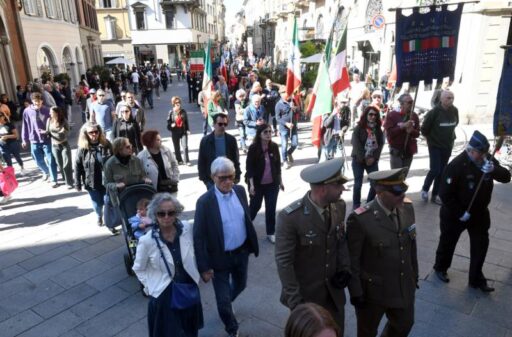 Condivido, su questo palco, un ricordo personale, perché credo che la Liberazione non si celebri solo nella solennità gioiosa del tricolore, o nell’unità che si respira in una piazza gremita e vestita a festa, ma che debba essere per ciascuno di noi, nell’intima adesione ai valori di cui è il simbolo, un momento di profonda consapevolezza. Come se ognuna di quelle famiglie che hanno pianto i propri cari, tra le macerie di un Paese ferito e disgregato, devastato dall’abisso del nazifascismo e dalla guerra, fosse anche la nostra.