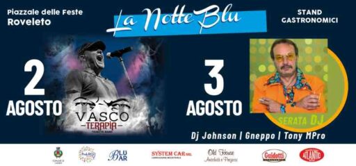 Festa, gioia e divertimento, sono alcuni ingredienti dell’appuntamento con “La Notte Blu” a Roveleto di Cadeo il 2 e 3 agosto nel piazzale delle feste. Ottima musica, cibo e drink venerdì e sabato.