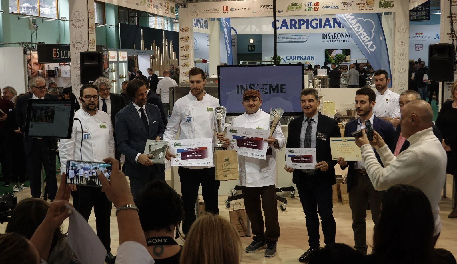 Il Gelatiere e pasticcere piacentino Gentian Ashiku titolare della gelateria pasticcieria Mil Sabores a Pontenure e il giovane chef Francesco Ferrari socio del locale Antonietta (prossimo all’apertura in Via San siro 28 Piacenza) si sono aggiudicati il secondo posto al concorso “Gelato a due” che si è tenuto lo scorso 28-29 Novembre al MIG di Longarone.