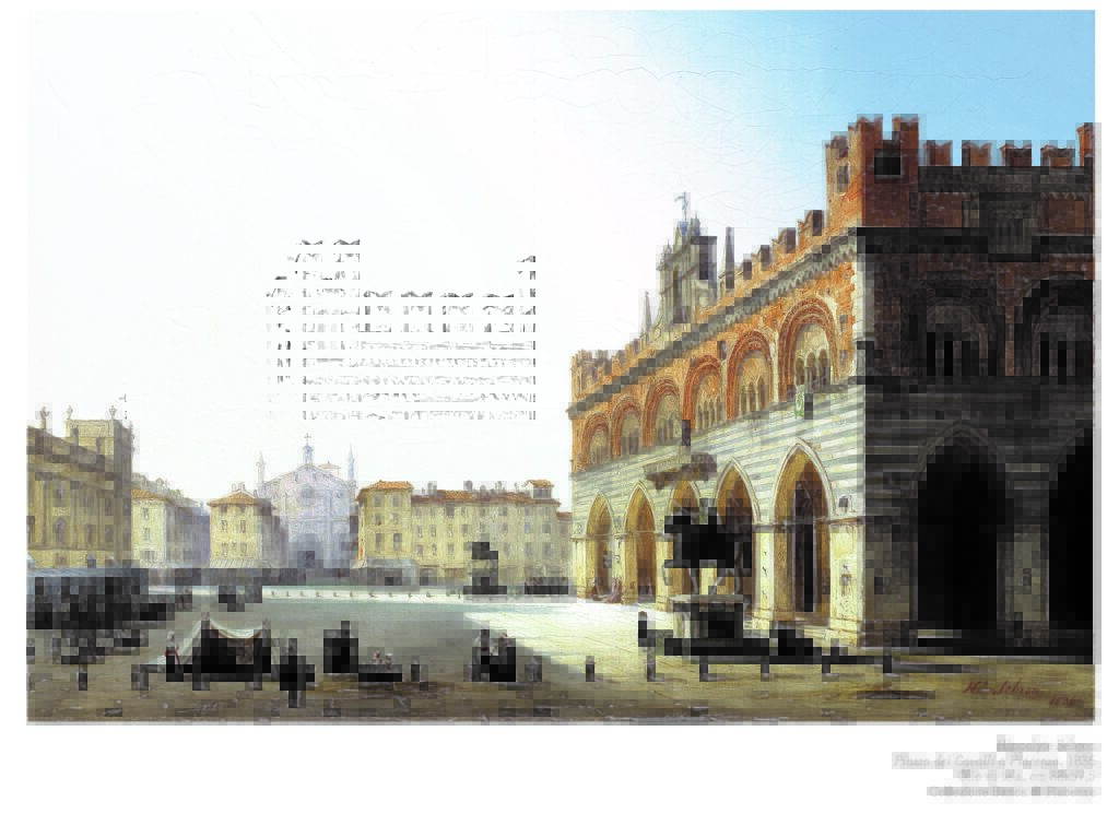 «Si tratta – ha spiegato – di un viaggio da inizio Ottocento fino ai giorni nostri attraverso il quale si presenta lo stretto rapporto tra la città e i suoi abitanti, in un insieme armonico di interazioni e ammodernamenti capaci di rendere questo territorio l’unicum che è oggi». Un viaggio attraverso l’esposizione di numerosi quadri (tra gli artisti in mostra, Hippolyte Sebron – dipinto designato immagine-mostra -, Jacques Carabain, Giovanni Migliara, Federico Moja, Luciano Ricchetti, Elvino Tomba, Bruno Sichel, Ernesto Giacobbi, Bot) che ritraggono appunto parti della Piacenza di una volta che non ci sono più: iniziando da Piazza Cavalli, per proseguire con le Piazze Duomo, Borgo, Sant’Antonino e Cittadella; sono poi presenti importanti edifici religiosi, tra cui la basilica di Santa Maria di Campagna, le chiese oggi sconsacrate delle Benedettine e di Santa Margherita; si incontrano infine i rioni Cantarana, Porta Borghetto e Muntä dí ratt. Completano l’esposizione una quarantina di fotografie d’epoca (scattate dai più rinomati studi fotografici attivi nel Novecento: i fratelli Eugenio ed Erminio Manzotti, Giulio Milani, Gianni Croce e da privati) e da cartoline, sempre d’epoca.