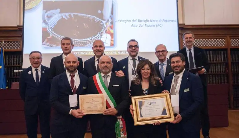 In una cerimonia ufficiale tenutasi lunedì 16 marzo, presso il Senato della Repubblica a Roma la Pro Loco di Pecorara ha ricevuto il marchio “Sagra di Qualità” per la Rassegna del tartufo che da 34 anni si celebra nel borgo dell’Alta Val Tidone. Il prestigioso riconoscimento, attribuito al sodalizio che da sempre si occupa dell’organizzazione dell’evento in collaborazione con il Comune, è stato consegnato nelle mani del Presidente Cristina Mussetti e di Mattia Valorosi accompagnati dal consigliere comunale delegato alle associazioni Carlo Fontana.