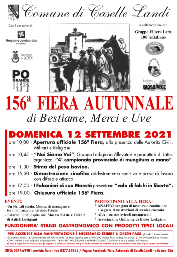 La storica “Fiera Autunnale” di bestiame, merci e uve, domenica 12 settembre a Caselle Landi ritorna un appuntamento molto sentito per la comunità della provincia di Lodi, giunto alla 156esima edizione.