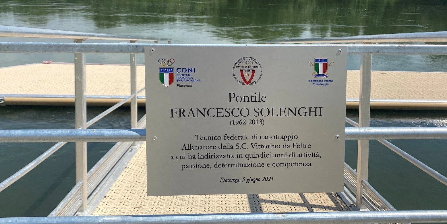 Il secondo momento celebrativo si è svolto invece di fronte alle acque del Po, dove è stato inaugurato il nuovo pontile che è stato intitolato alla memoria di Francesco Solenghi. Scomparso nel gennaio del 2013 a seguito di una grave malattia, Solenghi è stato per oltre quindici anni responsabile tecnico della squadra agonistica di canottaggio della Vittorino da Feltre che, grazie anche al suo lavoro e alla sua straordinaria passione sportiva, aveva scalato le classifiche nazionali passando, nel 2009, dal 150° al 12° posto.