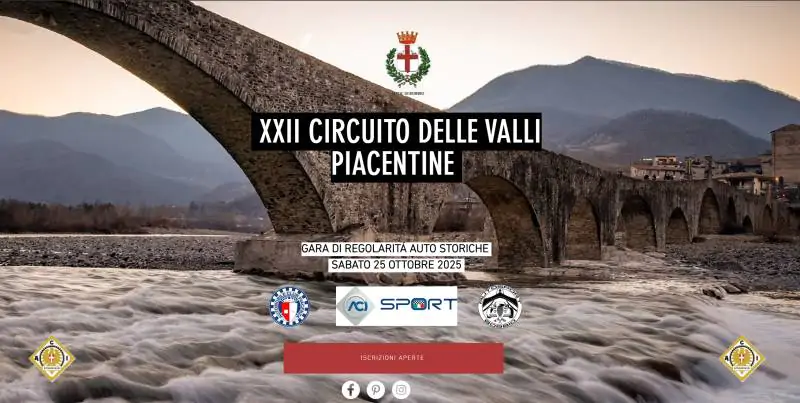 Sabato 25 Ottobre 2025 a Bobbio, Borgo Più Bello d’Italia 2019, si svolgerà la XXII edizione del Circuito delle Valli Piacentine, manifestazione di regolarità classica per auto storiche, a calendario ACI Sport.