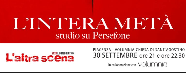 Dopo l’apertura in Piazza Cavalli con “Lapsus urbano” di Kepler-452, un altro spazio inedito per il teatro, la Chiesa di Sant’Agostino, e un altro progetto concepito nel periodo del lockdown e della sospensione di tutte le attività teatrali, “L’intera metà” – Studio su Persefone, ideato e realizzato collettivamente da artisti e tecnici di Teatro Gioco Vita.