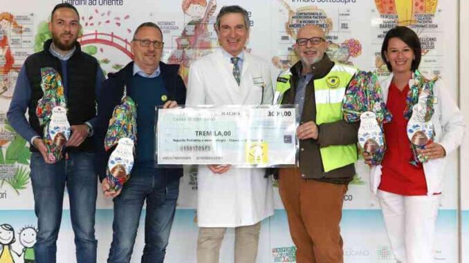 I tre volontari hanno consegnato le tradizionali uova di Pasqua – acquistate da Assofa – e un assegno benefico del valore di 3.000 euro, destinato a sostenere attività dedicate ai piccoli pazienti.