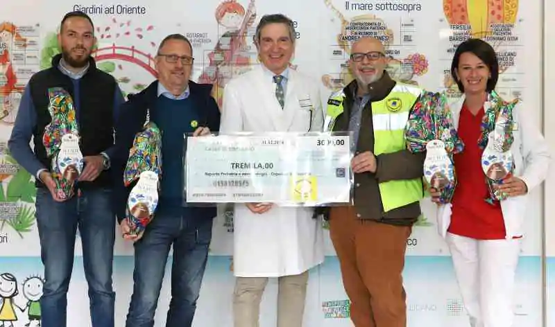 I tre volontari hanno consegnato le tradizionali uova di Pasqua – acquistate da Assofa – e un assegno benefico del valore di 3.000 euro, destinato a sostenere attività dedicate ai piccoli pazienti.
