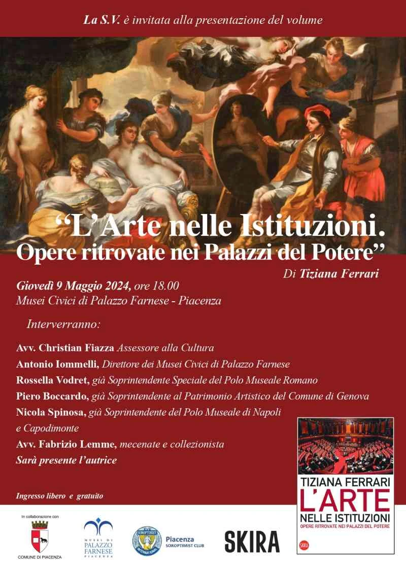 Giovedì 9 maggio 2024, alle ore 18.00, i Musei civici di Palazzo Farnese a Piacenza (piazza Cittadella 29) ospitano la presentazione del libro L’Arte nelle Istituzioni. Opere ritrovate nei Palazzi del Potere di Tiziana Ferrari (Skira Arte).