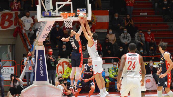 Terza vittoria consecutiva per la Giorgio Tesi Group Pistoia, che al PalaCarrara travolge letteralmente l’Assigeco Piacenza issandosi al secondo posto il classifica del girone verde di Serie A2 Old Wild West. Il dominio dei biancorossi emerge con chiarezza dal punteggio finale, 78-50, che ben sintetizza l’andamento di una gara a senso unico fin dalle prime battute. Gli uomini di coach Brienza scavano il solco decisivo nel secondo quarto, anche grazie a una difesa che non concede praticamente nulla, per poi rintuzzare il vantaggio dopo l’intervallo, senza mai concedersi passaggi a vuoto.