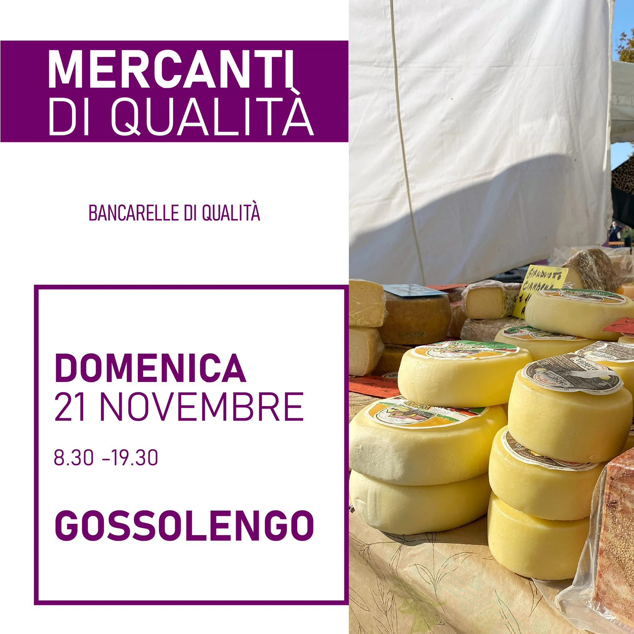 L’atmosfera del Natale con i Mercanti di Qualità domenica 21 novembre a Gossolengo. Inoltre i visitatori potranno gustare la specialità “Picula ad caval” proposta dalla locale Pro Loco e vin brulè e crepes con il bar gelateria Maako.