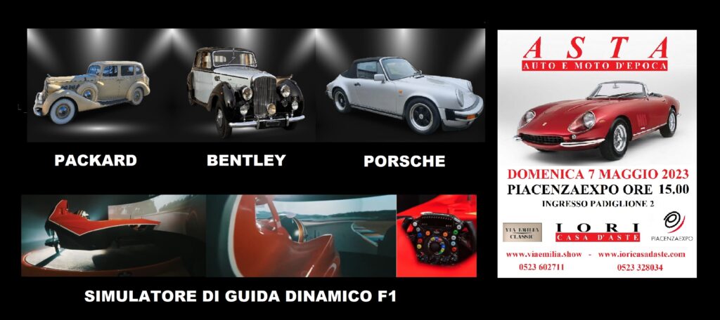 Un evento che rappresenta una novità per Piacenza e non solo. Per gli amanti della guida sportiva negli stessi giorni Iori Casa D’Aste mette a disposizioni due simulatori, uno dinamico per F1 e l’altro statico per Gt in collaborazione con Porsche Piacenza.