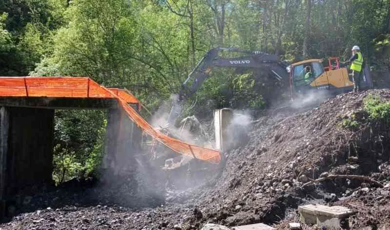 Quasi conclusa la demolizione del ponte sul rio del lago Moo in località Taravelli sulla strada di bonifica Ferriere-Rocca in Comune di Ferriere e prossima la costruzione della nuova opera.