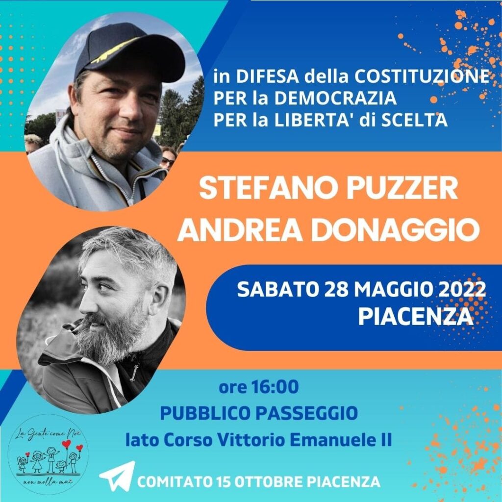 Sabato 28 maggio saranno ospiti Stefano Puzzer e Andrea Donaggio del comitato “la gente come noi”