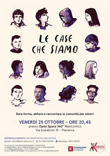 Al centro degli eventi lo spettacolo Le case che siamo, con il contributo della Fondazione di Piacenza e Vigevano; il desiderio di raccontare le comunità per minori attraverso lo sguardo del teatro, per dare forma e abitare le esperienze di queste case del cuore in cui l’accoglienza ridefinisce contorni e contenuti di vite, segnate, ma non per forza perse.