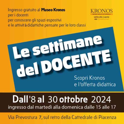 Le settimane del docente sono in arrivo a Kronos – Museo della Cattedrale di Piacenza , un’occasione per gli insegnanti di ogni ordine e grado di andare alla scoperta del museo e dell’offerta didattica della Diocesi di Piacenza-Bobbio.