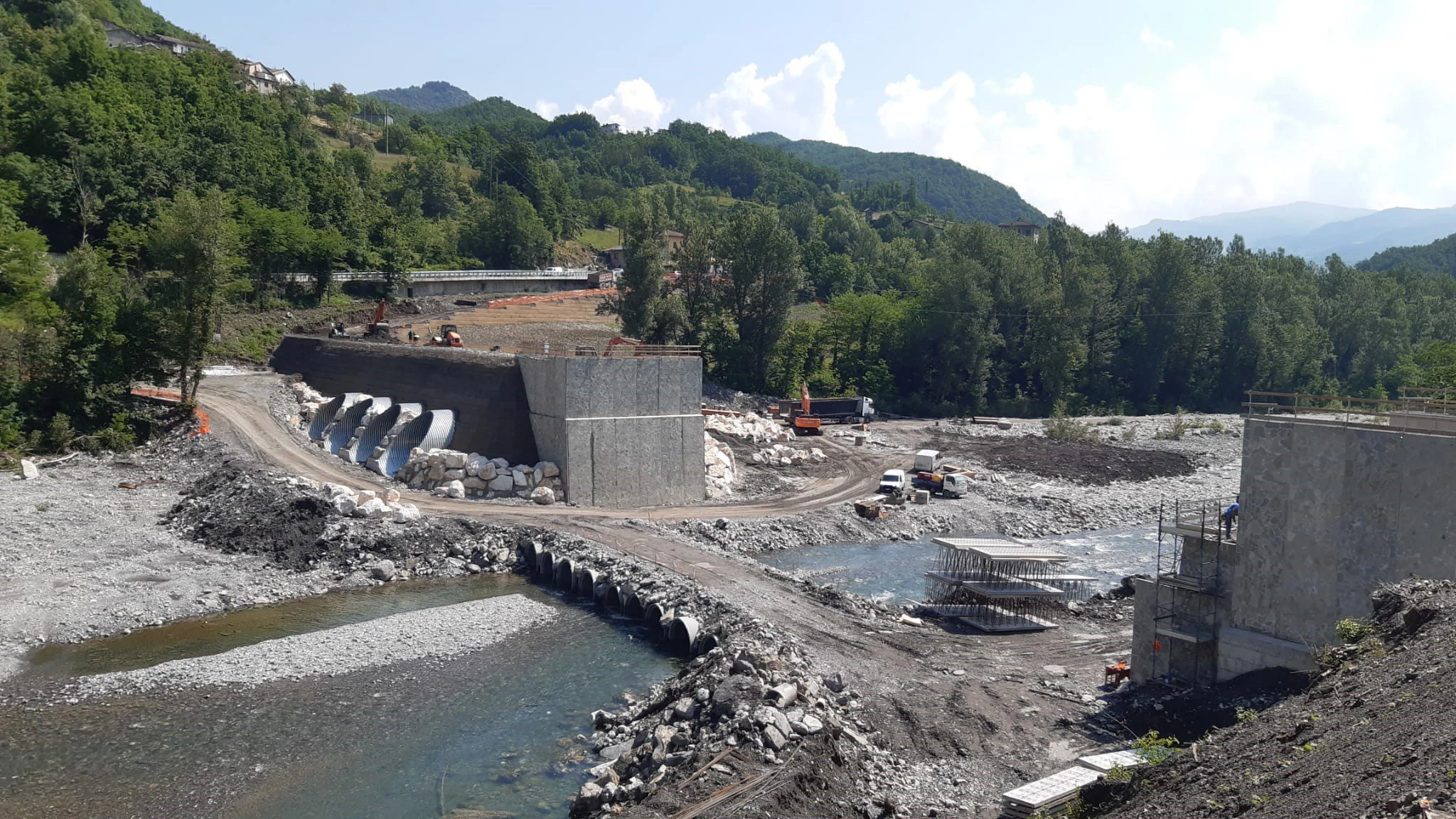 Per quanto riguarda in particolare lo stato di avanzamento delle attività, si sono conclusi i lavori di elevazione delle spalle sulle quali verrà installato il ponte; è stato ultimato il nuovo rilevato stradale, realizzato con paramenti in terre rinforzate e con materiale proveniente dall’alveo del fiume e sono state completate tutte le attività di natura idraulica.