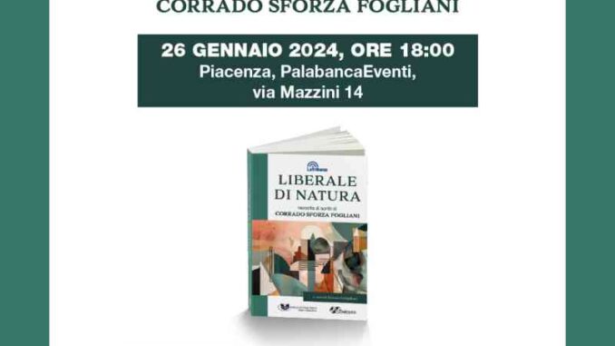 Venerdì 26 gennaio alle ore 18 al PalavancaEventi in programma la presentazione di “Liberale di Natura”, raccolta di scritti di Corrado Sforza Fogliani.