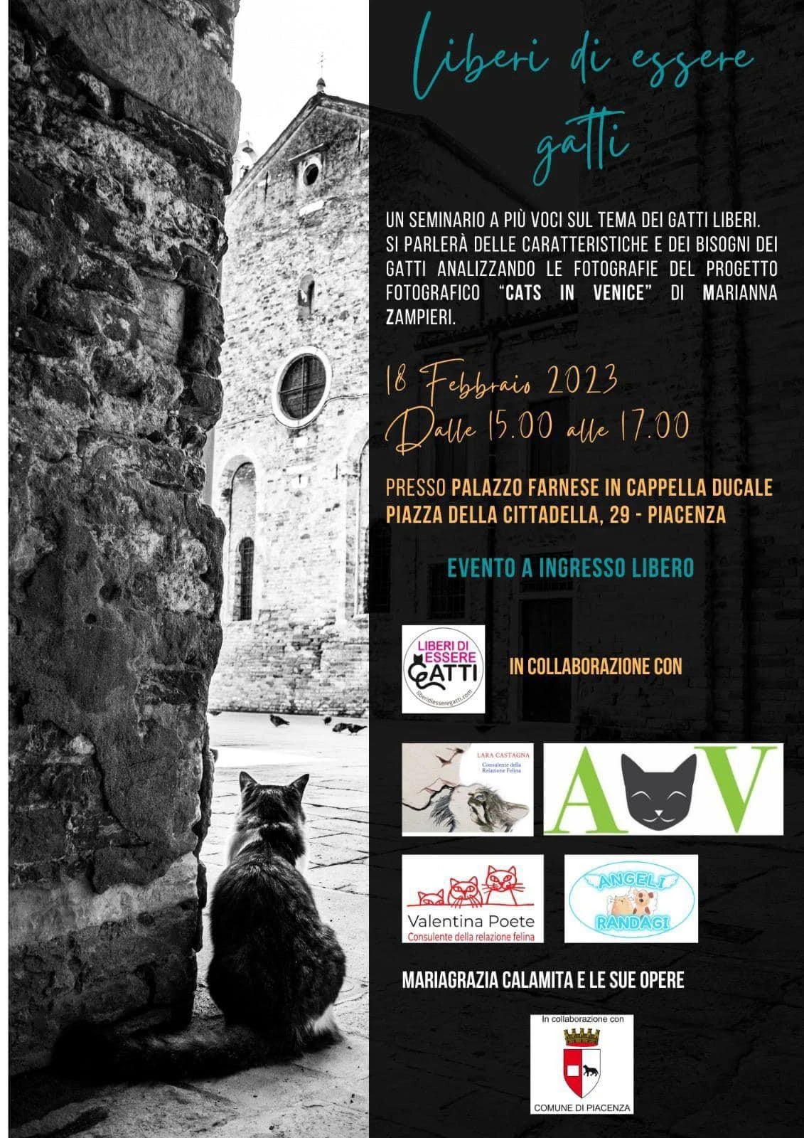 Si terrà sabato 18 febbraio, a partire dalle ore 15, presso la Cappella ducale di palazzo Farnese, l’evento a ingresso libero e rivolto a tutta la cittadinanza “Liberi di essere gatti”, organizzato dall’associazione “Angeli randagi”, in collaborazione con il Comune di Piacenza.