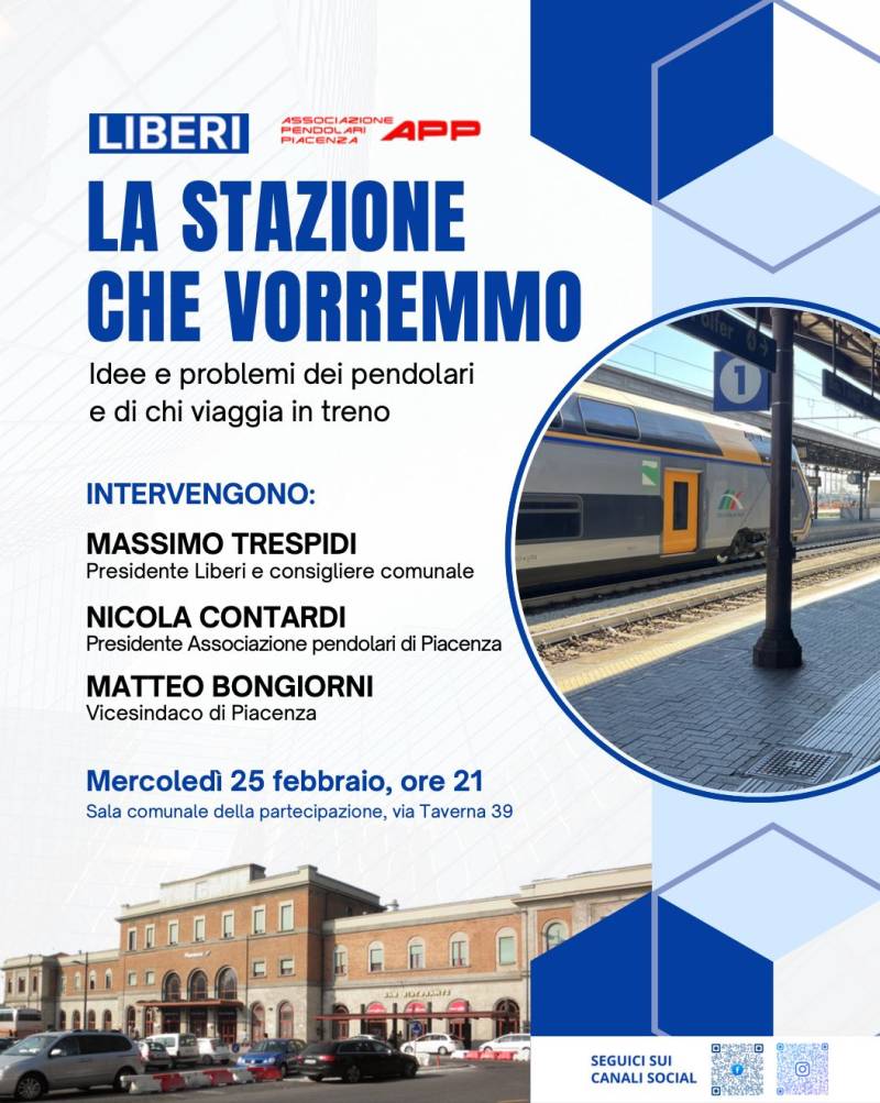 «La stazione è un nodo strategico per Piacenza e un luogo vissuto ogni giorno da pendolari, studenti e lavoratori. Vogliamo partire dai loro bisogni concreti – spiega Trespidi, presidente di Liberi e consigliere comunale –. Abbiamo coinvolto l’Associazione pendolari di Piacenza proprio per ascoltare idee, raccogliere segnalazioni e confrontarci sui problemi reali e sulle possibili soluzioni per migliorare servizi, sicurezza e qualità degli spazi».