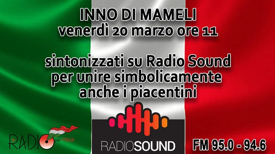 Tutto il Paese è invitato a sintonizzarsi sulla propria stazione radio preferita (i piacentini su Radio Sound), quella che accompagna ognuno nella propria quotidianità, ad alzare il volume, ad aprire le finestre e uscire sui balconi per cantare tutti insieme, sventolando il tricolore o mostrando un simbolo dell’Italia, per un momento che sia di riflessione e buona speranza per tutti.
