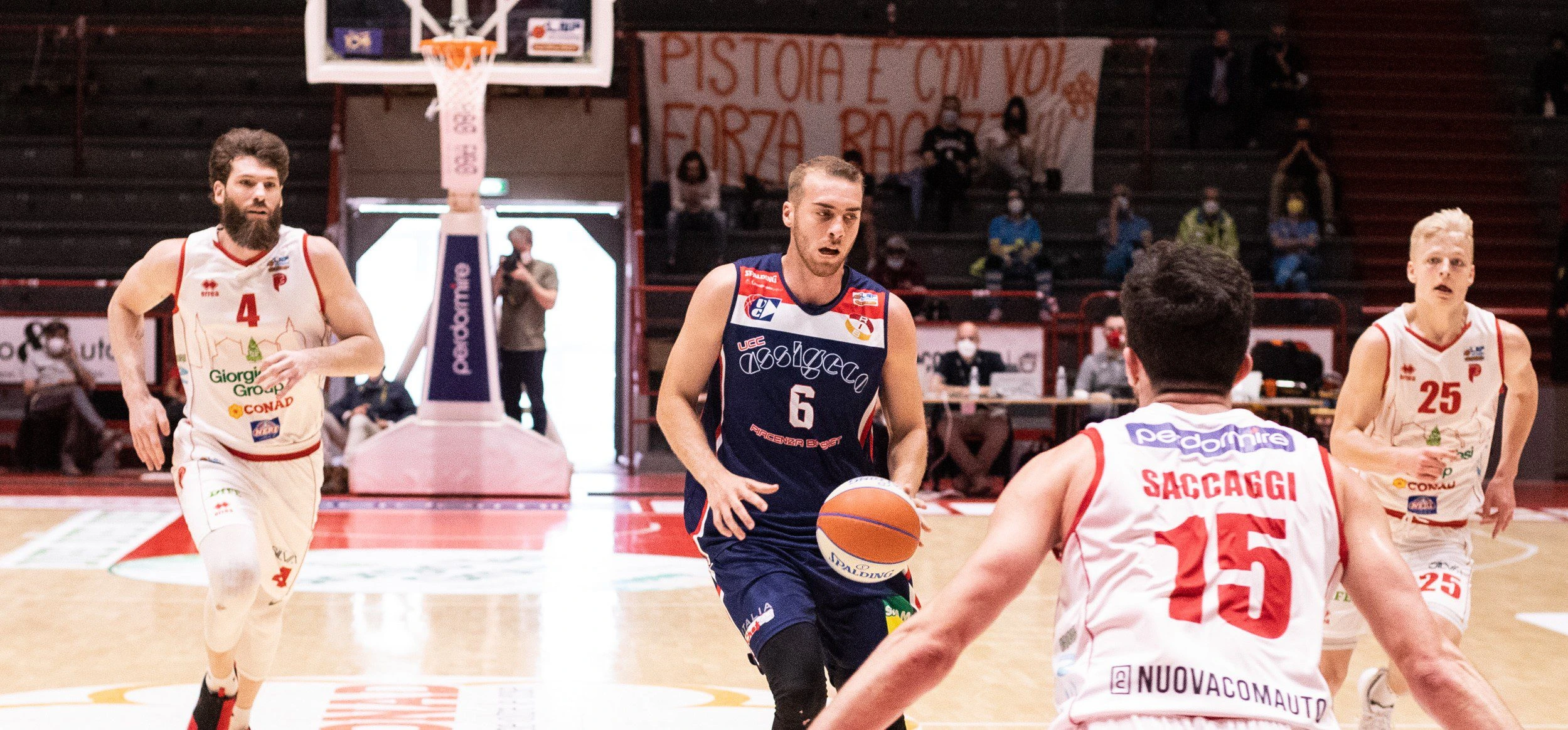 Non sono bastate intensità e abnegazione all’Assigeco Piacenza, che è rimasta a contatto di Pistoia praticamente per tutta la partita, salvo lasciare spazio ai padroni di casa nel quarto periodo. I bancorossoblu devono ancora rinviare quindi l’appuntamento con la vittoria nel girone azzurro e mercoledì saranno chiamati al match interno contro Ravenna sul parquet del PalaBanca (palla a due alle ore 19.00).