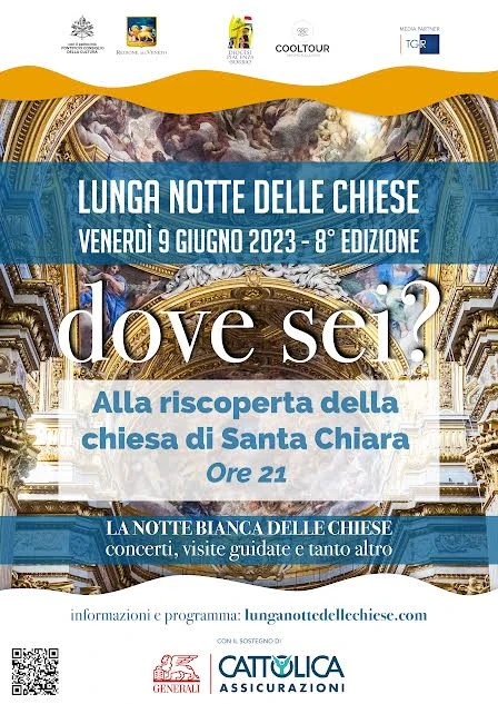 Venerdì 9 giugno 2023 alle ore 21:00, torna l’iniziativa “La lunga notte delle chiese”, la prima notte bianca dei luoghi di culto in cui si fondono musica, arte, cultura, in chiave di riflessione e spiritualita’.