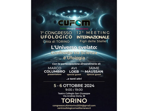 L’universo svelato – Confronto tra Scienza e Ufologia, organizzato dal CUFOM (Centro Ufologico Mediterraneo) con la collaborazione di altre due associazioni, Spazio Tesla ed Extremamente. In questa due-giorni, che coincide con la prima edizione del Congresso Ufologico Città di Torino e con la dodicesima edizione del Meeting Internazionale “Figli delle Stelle”, la questione UFO e Alieni (o UAP ed entità non umane, come si preferisce dire ora) – affermano gli organizzatori- verrà affrontata dal punto di vista scientifico, storico, sociologico, archeologico e umano, con relatori di fama internazionale. Sarà anche l’occasione per allacciare un dialogo e intavolare una discussione tra esponenti del mondo accademico e ricercatori indipendenti, le cui posizioni – strano a dirsi – talvolta si avvicinano più di quanto sembri.