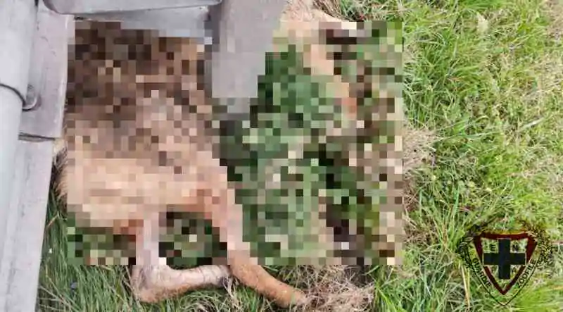 Le Guardie si sono quindi recate sul posto, hanno ispezionato il tratto di strada segnalato – un rettilineo di oltre 2 km con alta densità di traffico- rinvenendo un simil lupo di grossa taglia, (di seguito dopo accertamenti attraverso i medici veterinari del Cras sarà identificato come un esemplare maschio di Lupo), deceduto, incastrato fra guardrail è limitare del campo, intorno numerosi pezzi di quel che sembra il paraurti di un auto.