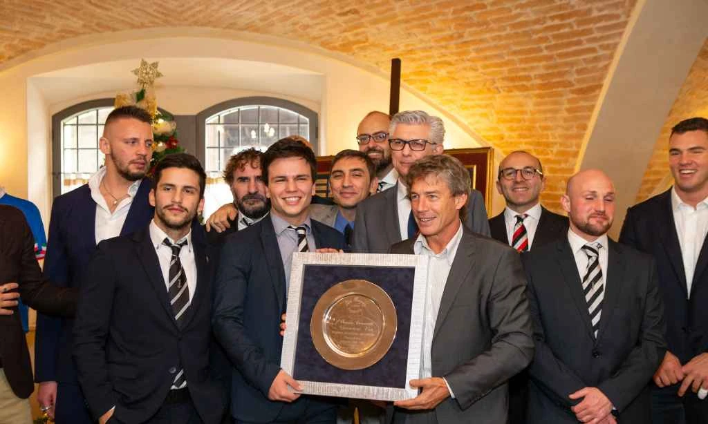 L’Old Rugby Club Piacenza ha assegnato nel consueto appuntamento dell’8 dicembre il Premio “Concarotti”, che premia il miglior giovane giocatore piacentino della stagione 2018/2019. Nella cornice del ristorante Volta del Vescovo è stato premiato l’estremo di Sitav Rugby Lyons Giovanni Via, uno dei grandi protagonisti della cavalcata nello scorso campionato di Serie A con 18 presenze e 11 mete. Giovanni Via si è affermato negli ultimi anni come uno dei prodotti più interessanti del vivaio dei Lyons, a partire dall’esordio nel campionato di Eccellenza all’età di 18 anni fino alle ultime due stagioni in Serie A disputate da titolare quasi inamovibile. Anche in questo inizio di stagione in Peroni Top12 ha trovato molto spazio, venendo sempre convocato con anche 5 partenze da titolare. Giovanni raggiunge così nell’albo d’oro del Premio “Concarotti” il fratello Alessandro, premiato quattro anni fa, e ha ricevuto il premio da niente meno che Diego Dominguez, ospite d’onore della giornata.