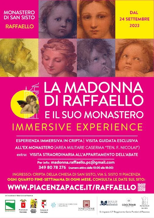 • Esperienza immersiva in cripta, per rivivere attraverso tecnologie digitali la storia del monastero di San Sisto e della Madonna sistina di Raffaello (visita libera) + Visita guidata esclusiva all’ex monastero (area militare caserma “Ten. F. Nicolai”)