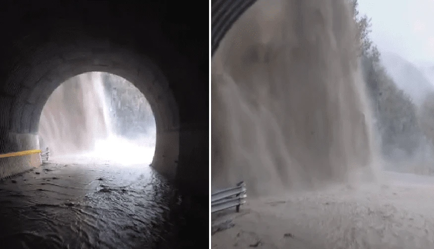 L’automobilista transita mentre dalla montagna precipita una vera e propria cascata sulla carreggiata. Le immagini sono impressionanti. Il conducente stava transitando lungo la strada che conduce a Ruffinati, frazione di Ferriere, e subito dopo il tunnel nei pressi del centro abitato si è trovato di fronte a questo scenario impressionante. Senza contare i rischi.