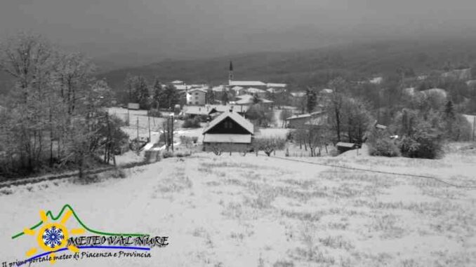 Nel frattempo nella zona di Farini, in alta Valnure, è tornata la neve. L’immagine in allegato è tratta dalle webcam di Meteovalnure.it che riprendono la situazione in tempo reale.