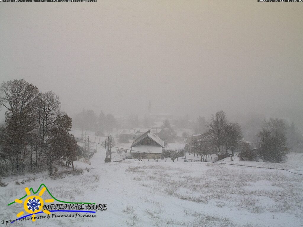 Non solo vento, però, dal momento che in alcune zone è tornata la neve: non occorre allontanarsi troppo dal capoluogo o raggiungere la montagna: la foto allegata ritrae uno scorcio di Pigazzano, Ferriere, Penice, Monte Bue, Ponte dell’Olio.