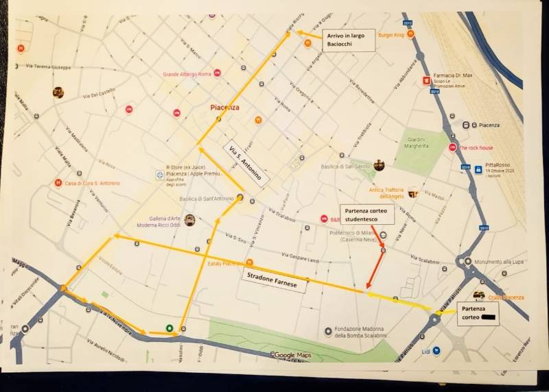 Si allega la mappa con il percorso del corteo, che interesserà In successione le seguenti zone:
