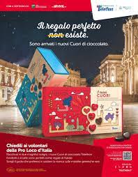 Quest’anno il regalo perfetto esiste – anticipa Bertuzzi – questa maratona porta sotto l’albero di Natale importanti e deliziose novità. Le coloratissime confezioni di un unico cuore vivace e fragrante sono sostituite da tanti cuoricino di cioccolato. Sono ben 15 gli scrini di cuori Telethon che raccontano la storia del legame che unisce tutte le anime del mondo della Fondazione. Parlano di partecipazione, di condivisione, di speranza e nello stesso tempo, una volta consumati i cuoricini, le scatole possono essere utilizzate per contenere ricordi, gioielli, fotografie. Insomma tutto quello che si conserva con amore”.
