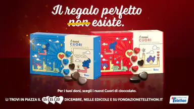 “Quest’anno il regalo perfetto esiste – anticipa Bertuzzi – questa maratona porta sotto l’albero di Natale importanti e deliziose novità. Le coloratissime confezioni di un unico cuore vivace e fragrante sono sostituite da tanti cuoricino di cioccolato. Sono ben 15 gli scrini di cuori Telethon che raccontano la storia del legame che unisce tutte le anime del mondo della Fondazione. Parlano di partecipazione, di condivisione, di speranza e nello stesso tempo, una volta consumati i cuoricini, le scatole possono essere utilizzate per contenere ricordi, gioielli, fotografie. Insomma tutto quello che si conserva con amore”.