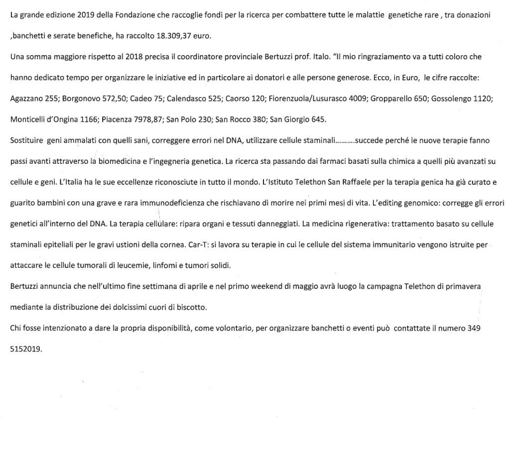 Alla maratona Telethon, grazie a donatori e volontari, arrivano oltre 18 mila euro.