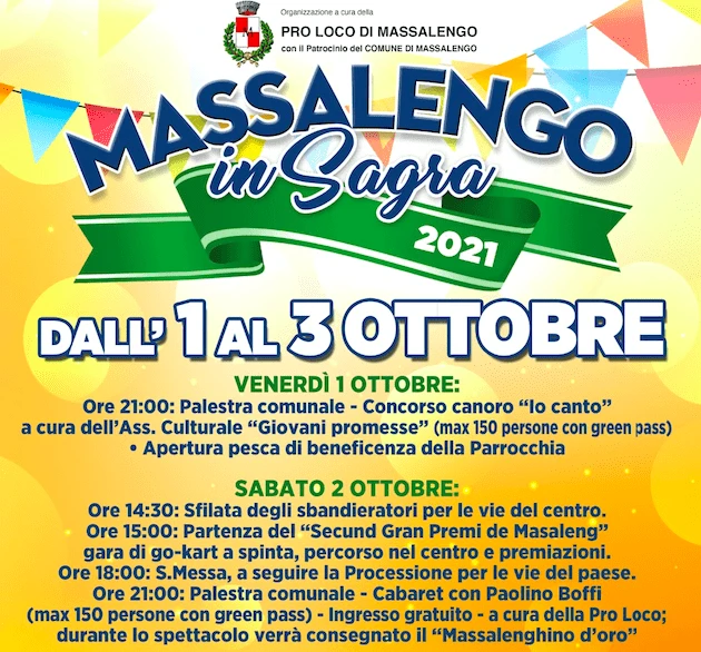 Il programma è molto ricco – spiega il Sindaco di Massalengo Severino Serafini – e dimostra la volontà di tornare a far festa e socializzare. Nei mesi scorsi siamo stati molto rigorosi nel rispetto delle regole anti Covid, quindi adesso anche per ringraziare la popolazione abbiamo deciso di provare, rispettando tutte le norme, a tornare alla normalità”.
